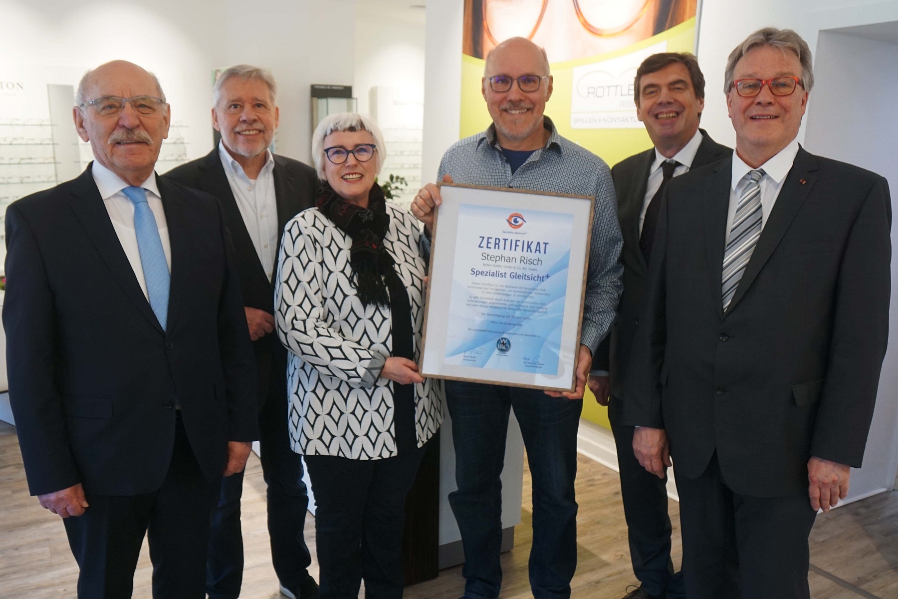 Am 12. März 2020 konnte Augenoptiker Stephan Risch von Optik Rottler in Essen von der WVAO-Vorsitzenden Vera Pfeifer und Geschäftsführer Hartmut Glaser das Zertifikat zum „Spezialist Gleitsicht +“ entgegen nehmen. Gratuliert wurde auch von Vertretern der Stadt.
