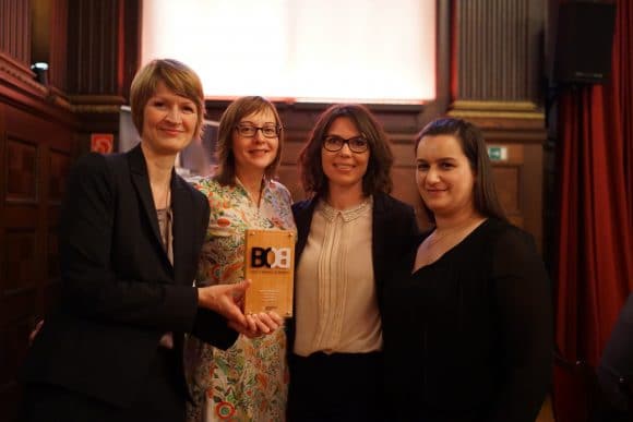Für das VR-Projekt ZEISS IOL UNIVERSE wurde ZEISS zusammen mit der Agentur Publicis Pixelpark ausgezeichnet. Von links nach rechts: Karin Möller (ZEISS), Susanne Mebus (ZEISS), Tanja Berlacher (Publicis Pixelpark), Laura Faber (Publicis Pixelpark) (Bild: Foto: ZEISS)