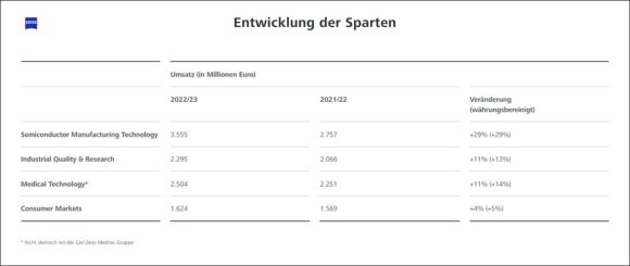 Alle vier Zeiss-Sparten trugen laut Zeiss zum Wachstum bei, das teilweise schwierige Marktumfeld wirkte sich dabei unterschiedlich stark aus.