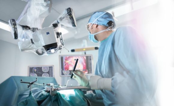 Zeiss hat sich im Geschäftsjahr 2016/17 intensiv mit dem Thema Vernetzung beschäftigt: Das robotische Visualisierungssystem Zeiss Kinevo 900 für die Visualisierung in der Neurochirurgie sei ein eindrucksvolles Beispiel. (Bild: Carl Zeiss AG)