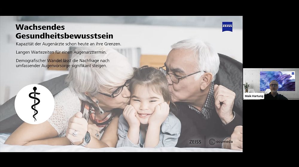 Zeiss Vision Care war mit dem EyeCare Network schon im Frühjahr bei der partnerauge-Webinarserie mit dabei, nun ist aus der Partnerschaft mit Ocumeda eine Beteiligung geworden. (Bild: Screenshot)