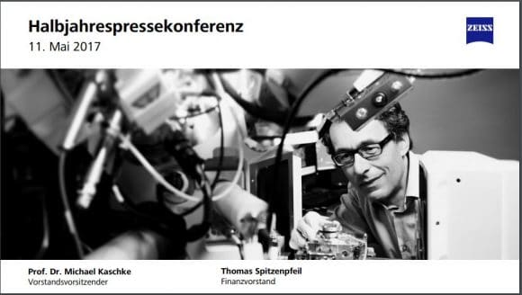 „ZEISS profitiert einmal mehr von seinem guten und zukunftsgerichteten Portfolio und konnte in allen Sparten gegenüber dem Vorjahreszeitraum zulegen“, sagte Prof. Dr. Michael Kaschke, Vorstandsvorsitzender der Carl Zeiss AG. „Mit unserem Wachstum untermauern wir auch unseren technologischen Führungsanspruch im Bereich Optik und Optoelektronik.“