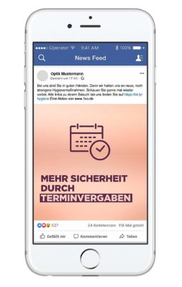 In der ersten Phase werden Motive ausgespielt, die die betrieblichen Hygienemaßnahmen in den Fokus nehmen, bevor es in der zweiten Phase verstärkt um augenoptische Dienstleistungen und Produkte geht.