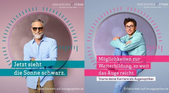 Neben zwei Aktionen mit deutschlandweit und zielgruppengerecht ausgespielten Online-Anzeigen im Frühsommer und im Herbst, die mit der Augenoptiker-Suche auf innungsoptiker.de verknüpft sind, hätten Innungsmitglieder wieder die Möglichkeit, das ganze Jahr lang ebenfalls die Kampagnen-Motive zu nutzen. Ab Mai wird es vier Zeiträume geben, in denen jeweils verschiedene Themen im Vordergrund stehen – mit Ausbildung und Sonnenbrille geht es los.