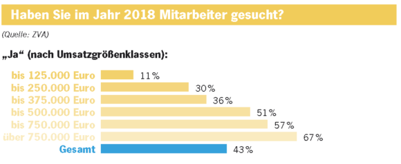 Grafik 5: Vor allem die umsatzstarken Betriebe suchen Personal (Quelle: ZVA, 2019)