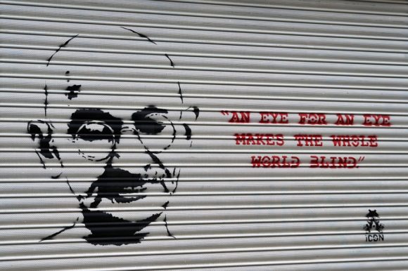 Street Art zu Gandhi – der Freiheits- und Unabhängigkeitskämpfer predigte gewaltlosen Protest und inspirierte ganze Generationen (Bild: Pixabay / TuendeBede)