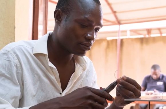 Ein besonderes Erlebnis für das Team von EinDollarBrille dort: Constant Zoungrana ist seit einer missglückten Augenoperation 2015 blind. Eines Tages fragte der 30-Jährige bei EinDollarBrille nach Arbeit – er würde sogar umsonst arbeiten, wenn er nur irgendetwas Sinnvolles tun könne. Das Team zeigte Constant, wie man Brillen biegt. Auf der neuen Biegemaschine gibt es extra Gravuren zum Tasten für Blinde.