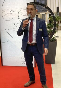 Satoshi Otsuki, Präsident und CEO von Charmant Europe, stellte auf der opti 2023 die neue Marke Geo vor (Bild: Patricia Perlitschke)