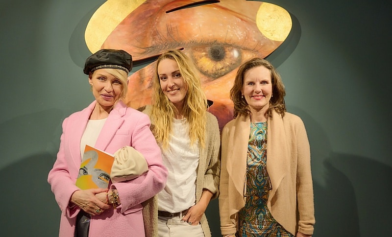 Auf der Finissage in Frankfurt (von links): Annette Kluger (Eschenbach), Künstlerin Giulia Wyss und Petra Becker (International Art Bridge) (Bild: Eschenbach Optik)