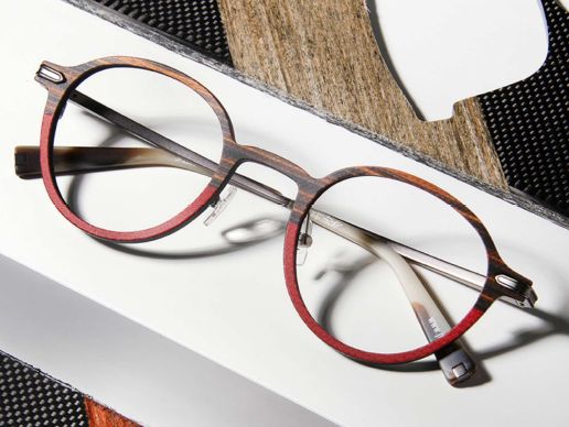 Das Label Thinwood wurde 2015 in Budapest gegründet und feierte auf der Silmo 2018 seine Premiere. Mit der Idee, eine 0,6 mm dünne Holzschicht zwischen zwei Carbonschichten zu packen, gelingt dem Ungarn Arnold Kis nicht nur eine sehr dünnrandige flexible Fassung, sondern auch ein Leichtgewicht (6-8 Gramm), ähnlich wie Titanbrillen, in einer vielfältigen Farbpalette.