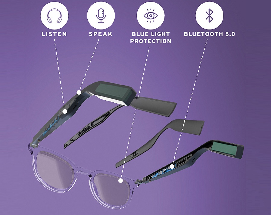 Die iGreen Smart Eyewear enthält Gläser mit einem Blaulichtfilter, um die Augen vor blauem Licht von hellen PC-, Tablet- und Smartphone-Bildschirmen zu schützen. Verglasung mit Korrektionsbrillengläsern ist ebenso möglich. Für Augenoptiker eine gute Möglichkeit, auch im Sektor Smart Glasses Kompetenz zu zeigen.