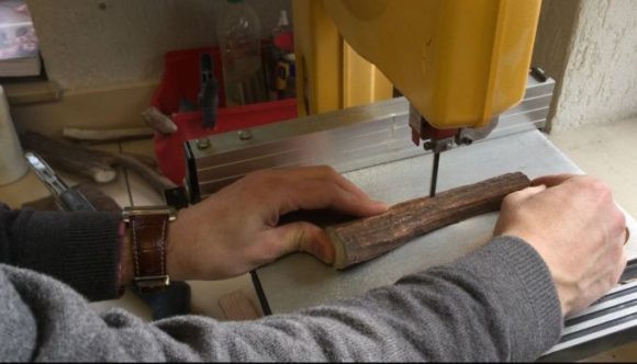 Da liegt auch schon ein vollständiges Geweih, das die Tiere alljährlich abwerfen. So muss der Kundenwunsch vom Hirschhorn für die Könige der Wälder gar nicht blutig ausgehen. Im Gegenteil. Das hochwertige Material ist ein Abfallprodukt.