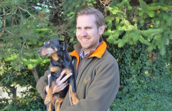 Selbst ein passionierter Jäger: Sebastian Schümmer mit seinem Jagdterrier Eika