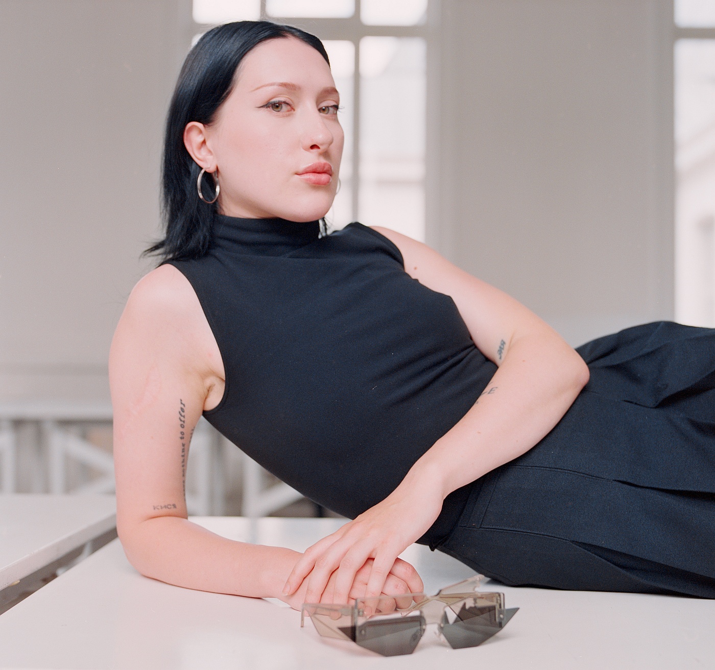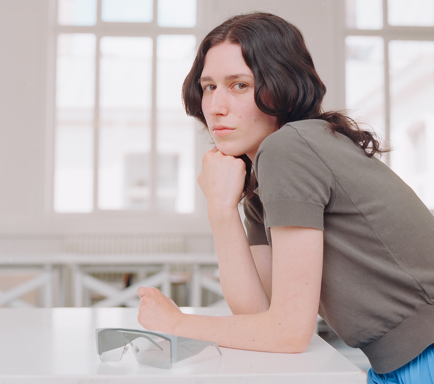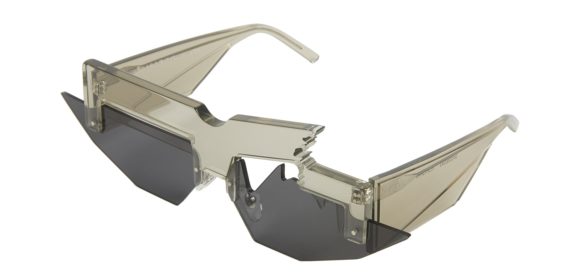 Inspiriert von den Konzeptautos der späten 70er Jahre und ihren aerodynamischen Qualitäten weist Annemarie Sarics futuristisch anmutendes Angebot eine geformte Linse und komplizierte Bügeldetails auf.