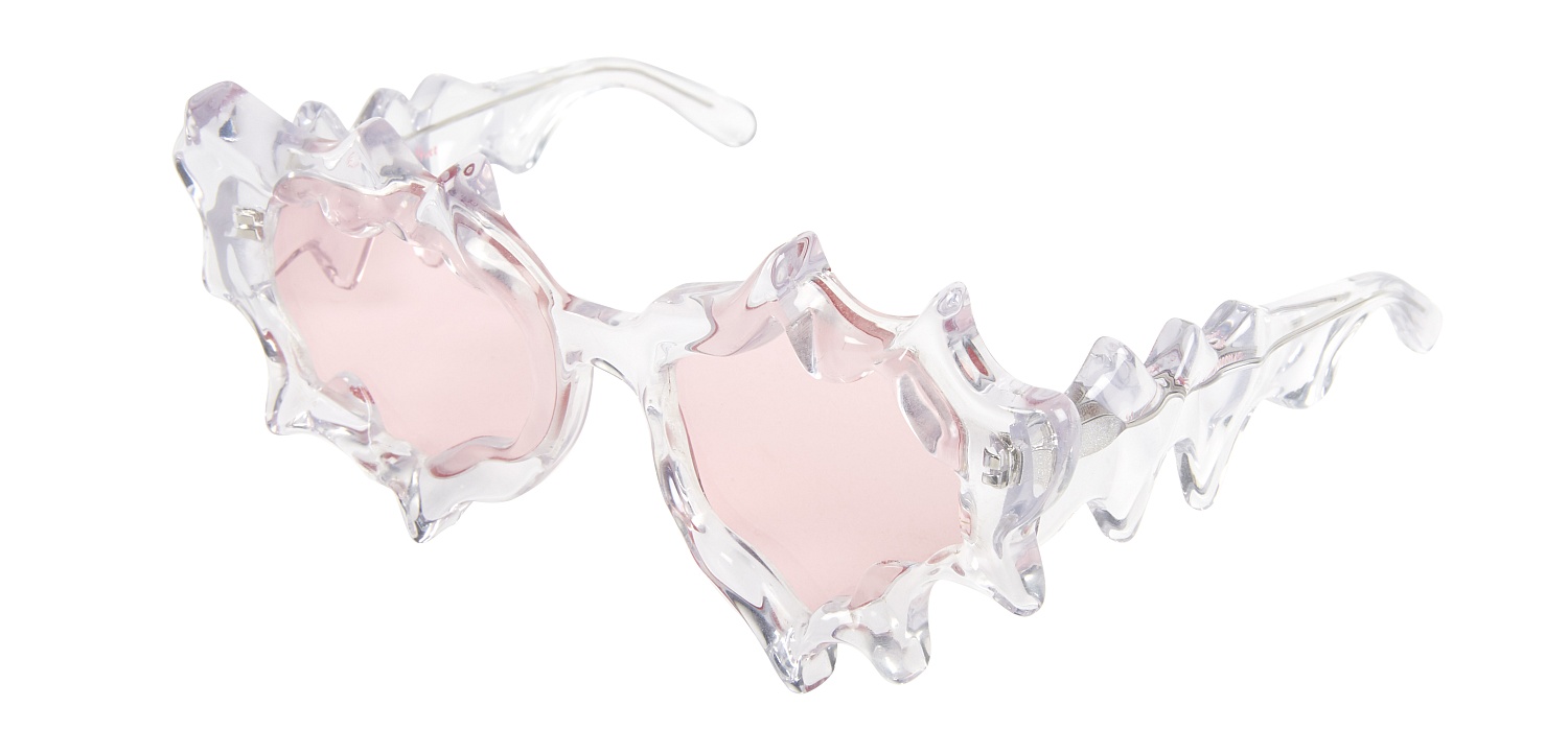 Florentina Leitner griff auf die 60er Jahre und ihre psychedelische Kunst zurück, um eine Brille zu kreieren, die zu einem Schwindel- oder Spiraleffekt gedehnt und verflüssigt wurde.