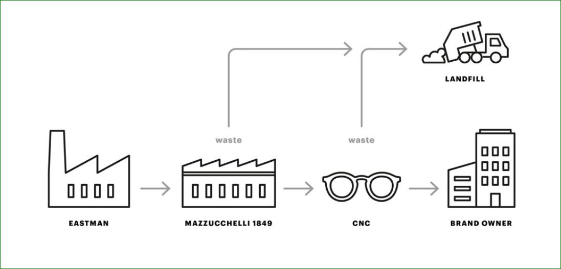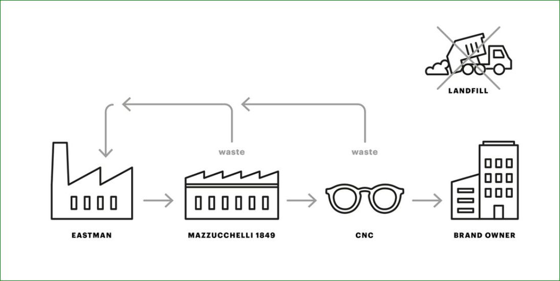 Mazzucchelli liefert Acetat-Abfälle zur Kohlenstoffrückgewinnung an Eastman. Eastman wird bald damit beginnen, in großem Maßstab Abfälle von Brillenherstellern zu sammeln und zu recyceln und in neues Material umzuwandeln. Dies führt zu einem echt geschlossenem Kreislauf in der Brillenindustrie. Eastman produziert bereits Acetate Renew, und Mazzucchelli erwartet, dass die aus diesem Material hergestellten Platten vor Ende des zweiten Quartals im Handel erhältlich sind.