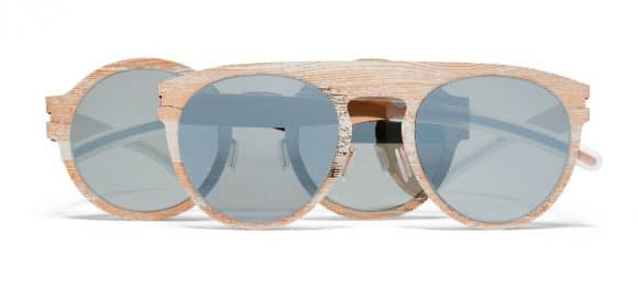 Neue Form und Textur sind zu der Transfer Kollektion hinzu gekommen. Das Modell MMTRANSFER004 zeigt eine Kombination aus runder Form, auffälliger Brücke und flachen Gläsern. Den Stahl-Rahmen ziert zudem eine Pinienholz-Oberfläche.