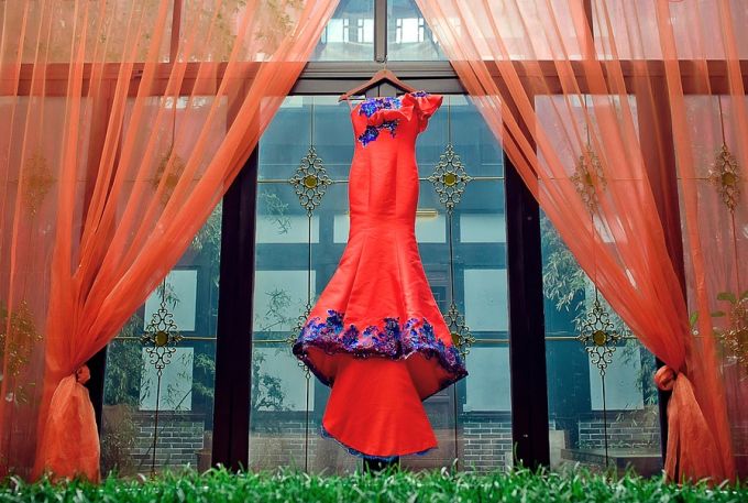 Für die Chinesen ist Rot ein Symbol für Freude, Sommer und den Süden (Lehre der fünf Elemente). Rot bedeutet Glück und wird daher gern für Geschenkpapier, Einladungskarten und alles Festliche verwendet. Die Farbe des traditionellen Brautkleides ist rot, doch wird heute vermehrt unter westlichem Einfluss auch in Weiß geheiratet.