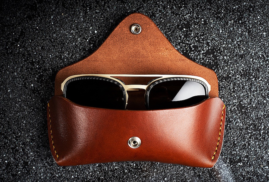 Sonnenbrille und Etui von Roveri Eyewear: Exklusive Details sind Teil der DNA von Roveri Eyewear, wie das handgefertigte Etui