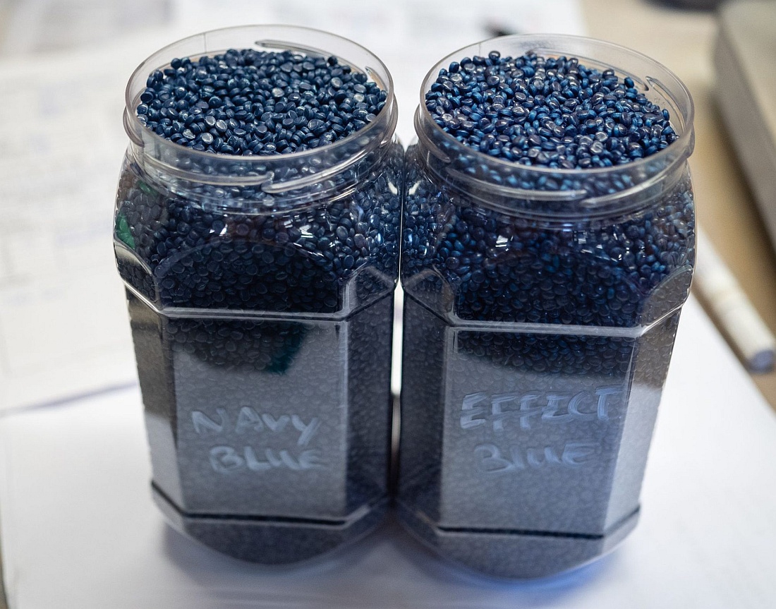 Sehr komplex. Hier wurde ein innovatives Upcycling-Verfahren für Kunststoffarten verwendet, die traditionell schwieriger zu recyceln sind. Die im Great Pacific Garbage Patch gesammelten Kunststoffe sind starre Kunststoffe und faserige „Geisternetze“. Deshalb müssen diese Fänge separat recycelt und verarbeitet werden.