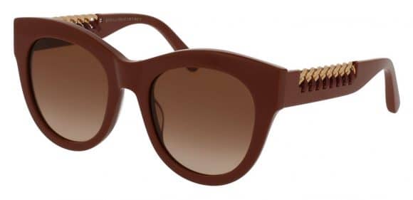 SC0064S: Eine klassische Brille in Cat-Eye-Form mit einer von Hand im Bügel applizierten Falabella-Kette. Die feminine, elegante Neuinterpretation eines echten Stella-Klassikers. Erhältlich in Schwarz, dunklem und mittlerem Havanna, Nude Rosé und einem Lehmrot.