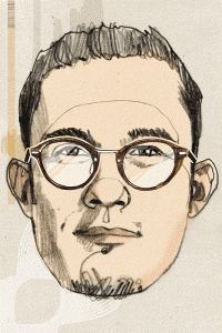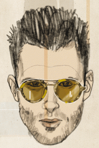 Dieser Mann hat breite Wangenknochen und eine spitze Kinnpartie. Hier passt eine zarte Fassung, deren Rahmen nach unten hin dünner wird.
