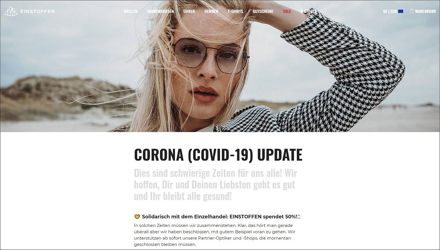 Einstoffen: Landing Page zur Corona-Aktion für Augenoptiker