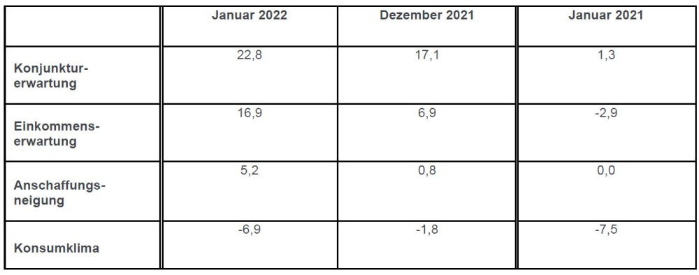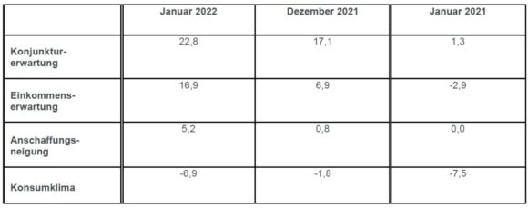 Konsumklima Jan 2022 Entwicklung Indikatoren - GfK