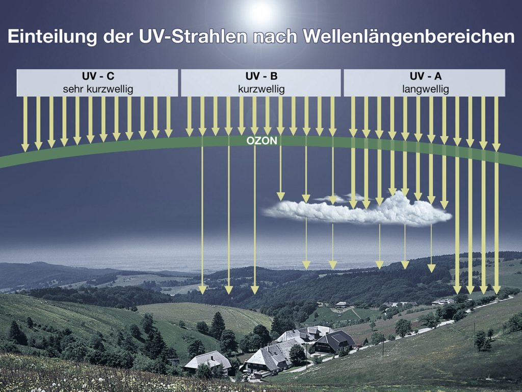 UV-Strahlung: C-, B- und A- und ihre Wellenlängen (Bild: Bundesamt für Strahlenschutz)
