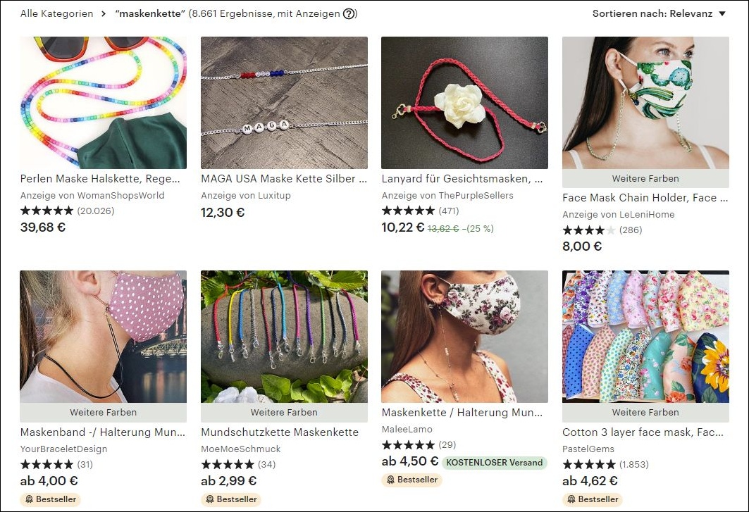 Über 8.000 Ergebnisse zum Stichwort Maskenkette z.B. auf Etsy.com