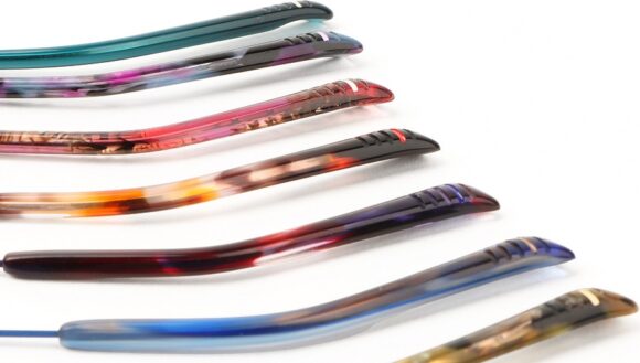 Schrauben- und federlose Flex-Scharniere ermöglichen ein einfaches Verstellen der Bügel, ohne die Fassung zu verbiegen. Die Bügelenden der Celsius bestehen je nach Modell aus mattem oder transparentem Acetat, in das die fünf charakteristischen Linien von Morel eingraviert sind. Diese Linien stehen für die Vergangenheit, die Gegenwart und die Zukunft des Unternehmens.