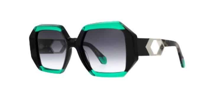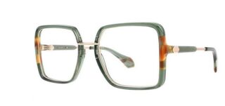 Die quadratische Form aus „Carven“ bietet einen Hauch von zeitloser Raffinesse. Die Kombination aus zwei Acetaten, einem kristallgrünen und einem gesprenkelt-grünen, zieht das Auge garantiert in seinen Bann. Goldene Details: Der grafisch gestaltete Nasesteg mit Rillen und der Calisson auf den Backen verleihen einen subtilen Hauch von Luxus.