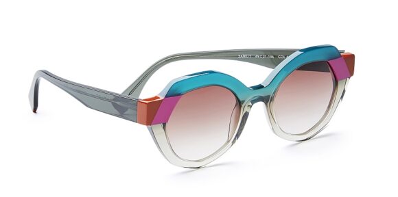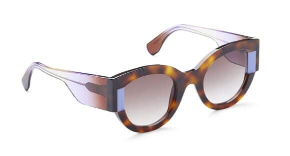 Sprechen Sie nach: „mugiwara zaïku“. Dieser japanische Begriff bezieht sich auf eine sehr spezielle Intarsien-Arbeit – die Stroharbeit, die diese präzise und intensive Sonnenbrille inspiriert. Geometrische Verschachtelungen, kaleidoskopische Farben und starke Verdickungen am Rahmen, in denen die Materialien zur Geltung kommen: Ebenso unerwartete wie elegante Details machen dieses Design zu einem echten Fashion-Statement. Lebendig und auffallend!