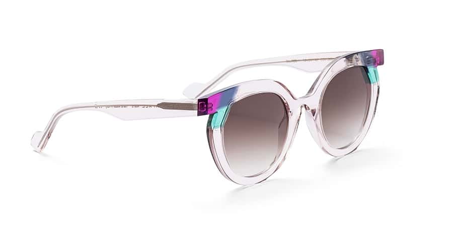 Diese großzügige, hedonistische Sonnenbrille ist ein wahrer Farbrausch und veranschaulicht optimal die Forschung der Marke zur Farbfusion. Sie verbindet eine poetische und digitale Ästhetik, die sie zu einem unverzichtbaren, avantgardistischen und bereits ikonischen Stück macht!