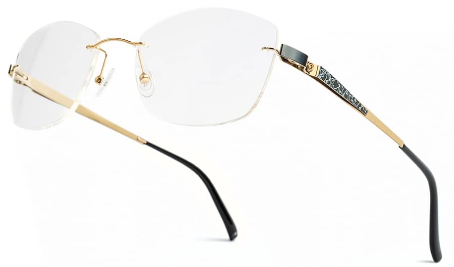 Geschmiedete Beta-Titanbügel mit Dreikantprofil ermöglichen besondere Farbkombinationen, die dem der Bohrbrillenversion folgen und unterstreichen den „State-of-the-Art“-Charakter der Fassung.