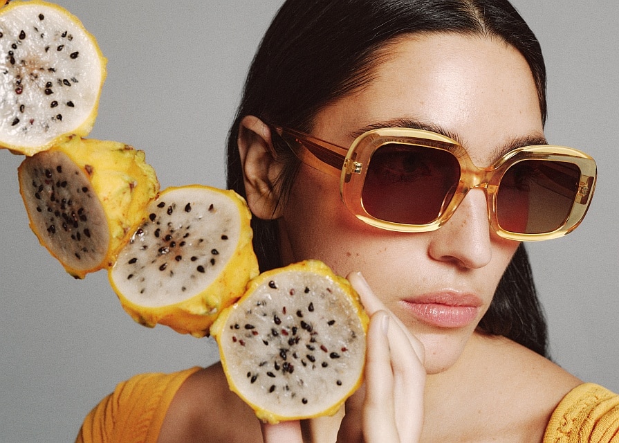 Die Kollektion „Odd Fruits“ von Gigi Studios ist inspiriert von der Ausdruckskraft der Früchte und ihrem unendlichen Reichtum an Farben und Texturen. Sie besteht aus sechs Acetat-Modellen: drei Korrektions- und drei Sonnenbrillen-Modelle.