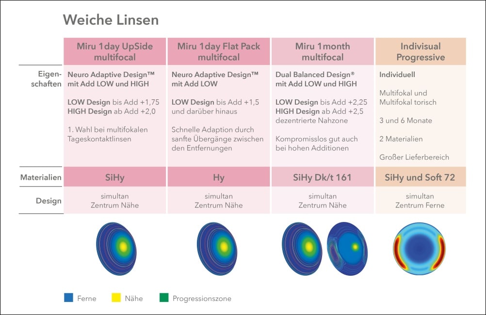 Menicon-Übersicht Mehrstärken-Kontaktlinsen