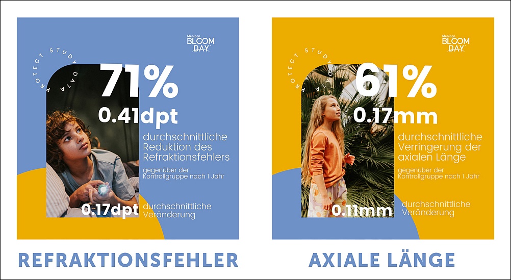 Menicon Bloom Day-Tageslinsen für das Myopie-Management verlangsamen nachweislich das Fortschreiten der Kurzsichtigkeit bei Kindern und Jugendlichen. Aus der auf drei Jahre angelegten „PROTECT“-Studie (1) liegen nach zwei Jahren vielversprechende Zwischen-Ergebnisse vor (2). Diese bestätigen die Wirksamkeit und Sicherheit von Menicon Bloom Day Tageslinsen für das Myopie-Management.
