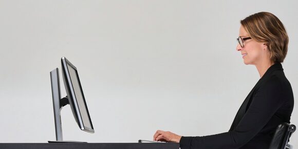 Im Zwischenbereich stößt eine Gleitsichtbrille an Grenzen. So ist etwa der Blick auf den PC-Monitor auf Dauer anstrengend, weil Brillenträger ihren Kopf dabei leicht in den Nacken legen müssen, um die richtigen Sehbereiche ihrer Gläser nutzen zu können. Die Lösung heißt bei Rupp + Hubrach (R+H): Nah + Raum.