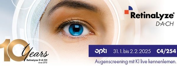 2025 begeht RetinaLyze D-A-CH gleich zwei Jubiläen: das zehnjährige Bestehen und die zehnte Teilnahme an der opti. Zehn Jahre mögen zunächst jung erscheinen, doch für dieses KI-gestützte Augenscreening bedeuten sie Anerkennung für langjährige Erfahrung und Beständigkeit in der Augenoptik-Branche.