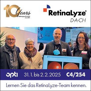 Auf der opti 2025 bietet sich Augenoptikern und Optometristen die Möglichkeit, diese ausgereifte KI-Software live zu erleben. Routiniert und innovativ sind bei RetinaLyze kein Widerspruch, sondern ein Ausweis dafür, als Pionierin gestartet und stets an die Vision geglaubt zu haben. Messe-Besuchende entdecken auch 2025 auf dem Messestand von RetinaLyze (C4/254) und den Partnern eine Neuigkeit: Bei der SaaS-Software kann seit Oktober 2024 zusätzlich der „Glaucoma Index of Progression (GIP)“ abonniert werden.