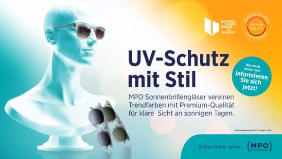 Die MPO Sonnenbrillengläser sind mehr als nur eine Produktreihe. Sie vereinen Qualität mit trendigen Farben und schützen dabei die Augen vor schädlichen UV-Strahlen. Weitere Informationen finden Sie hier.