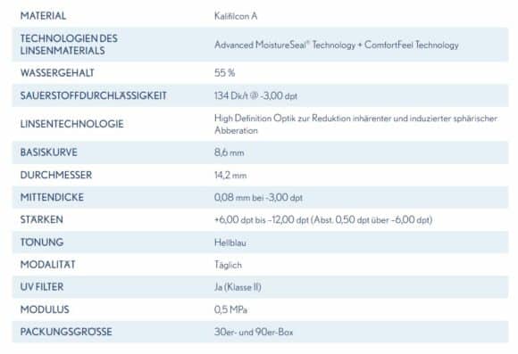 HÖCHSTE FEUCHTIGKEIT UND HÖCHSTE FEUCHTIGKEITSSPEICHERUNG* – Die Advance MoistureSeal® Technologie liefert 55 % Wassergehalt und bewahrt 96 % Feuchtigkeit der Linse für langes, komfortables Kontaktlinsentragen