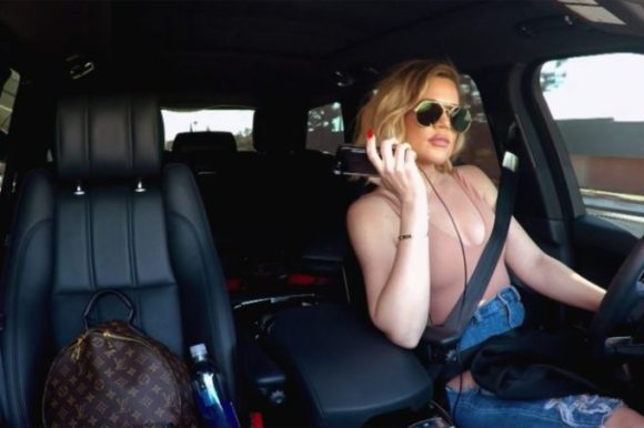 Even though she clearly can’t take the podcast seriously, Khloé thinks she might as well call Kim to apologize for the outbursts in her closet. When Khloé calls Kim, Kim answers, but she doesn’t sound happy. Kim does confess to avoiding Khloé recently, because she doesn’t know when her sister will pop off on her. Khloé apologizes, but Kim doesn’t take it to heart. She tells Khloé to call her back when she’s capable of being a “decent human being” instead of a “cunt,” lets out a powerful “OKKKKRRRR!” and hangs up the phone. This scene (video on vimeo)was filmed on June 21, 2017.