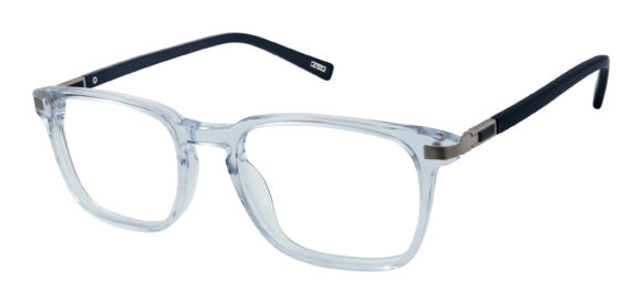 Style K-655 is a rounded square shape frame featuring a translucent crystal acetate front that is matched with a darker-hued temple. Metal end pieces with stylized hinges add the finishing touch. This style is offered in blue, brown and grey.