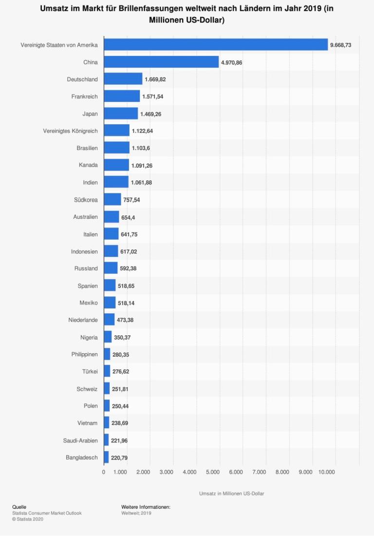 Keine Frage: Deutschland ist Brillenland. Nach den USA und China ist es das Land in der Welt mit dem größten Umsatz an Brillengläsern und Brillenfassungen.