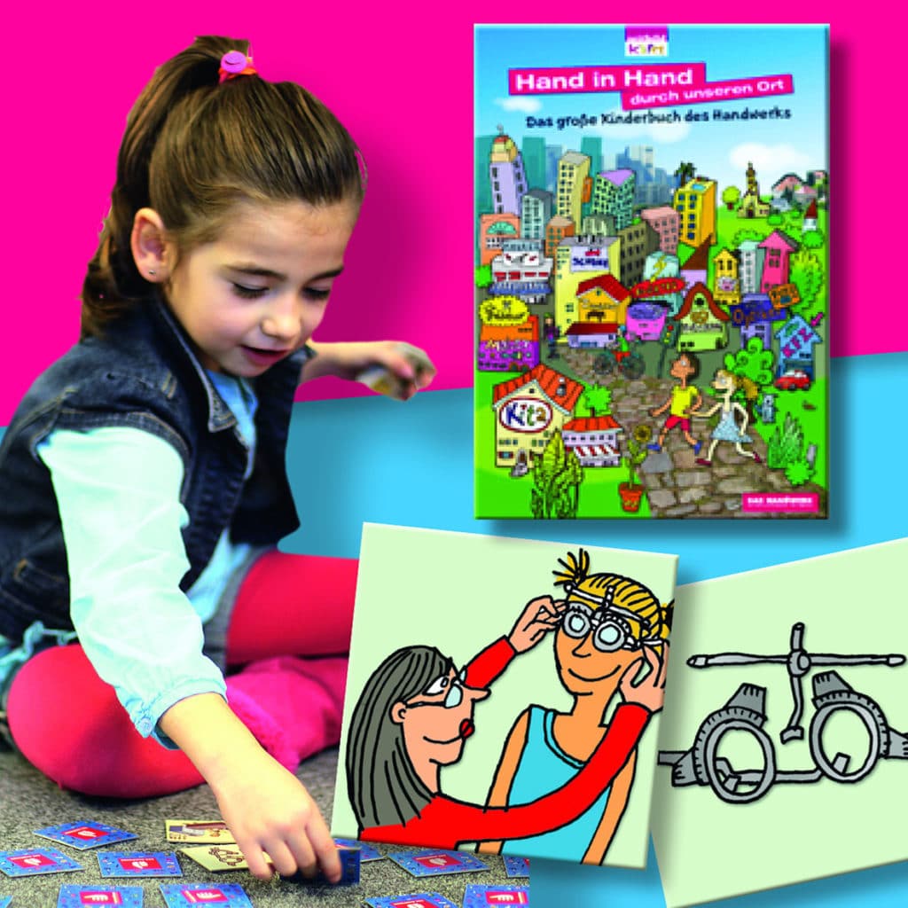 Kinder sind kleine Entdecker, die alles mit ihren Händen ausprobieren wollen. Die neuen Aktionsmaterialien des Handwerks bieten dazu ab sofort Gelegenheit: Mit Riesenkinderbuch, Bildersuchspiel und einem Mitmach-Wettbewerb für Kitas können schon die Kleinsten den Beruf des Augenoptikers und 23 weitere Gewerke spielerisch erkunden.