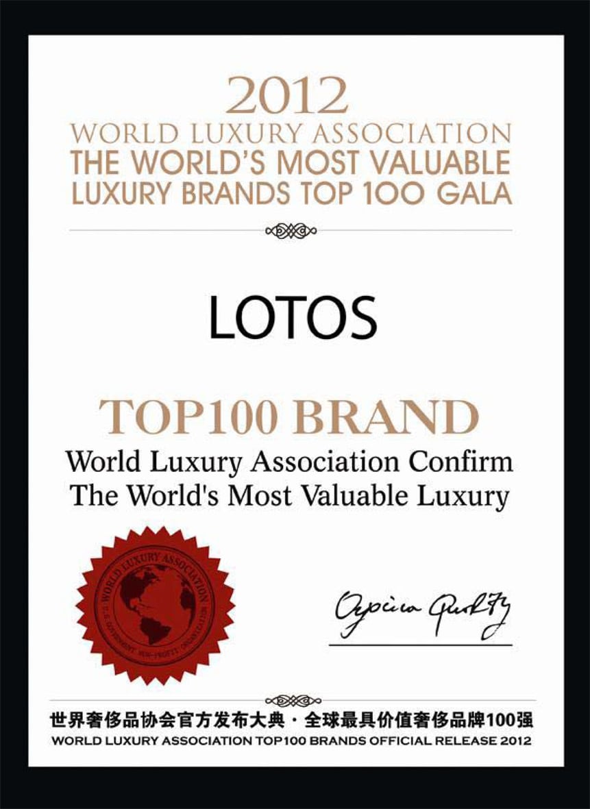 Nun hat es neben Maybach auch Lotos in den Olymp geschafft. Somit ist eine weitere deutsche Firma in den Top 100 der hochwertigsten Luxusmarken der Welt zu finden. Als einzige Brillenmarke der Welt wurde Lotos in der Kategorie „Die weltweiten TOP10 im Bereich Innovative Marken“ ausgezeichnet. Für das im badischen Eisingen ansässige Unternehmen ist dies eine große Auszeichnung und Bestätigung für die Herstellung individueller Meisterstücke „Hand Made in Germany“.