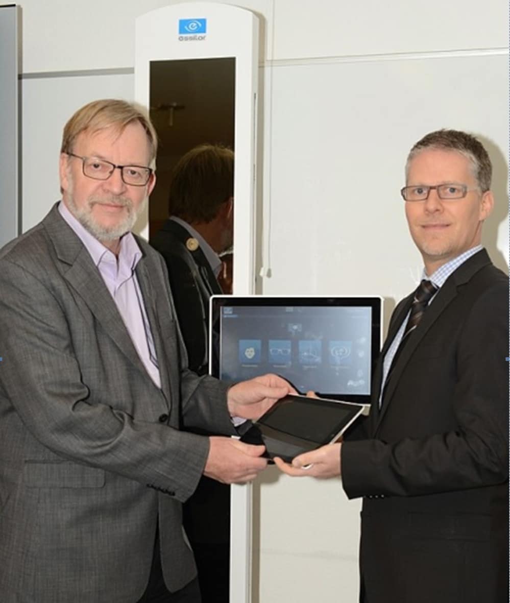 Die renommierte Fachschule in Köln ist seit vielen Jahren in engem Kontakt mit Essilor, um den Studenten einen Überblick über die im Markt befindlichen Produkte und Instrumente zu geben. Gleichzeitig ist ein Kontakt der Studierenden zu den neuesten Entwicklungen integraler Bestandteil der Ausbildung an der HFAK. Als erste wurden Jens Uwe Bartz, Stellvertretender Schulleiter der HFAK, und Johannes Schweinem, Dozent in die Bedienung der Geräte eingewiesen. Im Bild: Direktor der HFAK -Priv. Doz. Dr. W. Wesemann und Leitung Produktmanagement & Marketing, Key Account Management Essilor Instrumente Matthias Joos während der offiziellen Übergabe.
