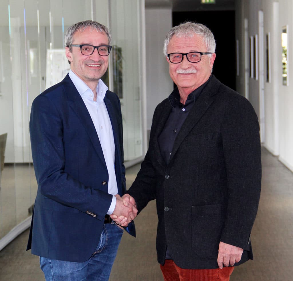 Harald Böttcher (rechts), einer der bisherigen Besitzer des Familienunternehmens op Couture Brillen GmbH, zeigt sich höchst zufrieden mit der „Passauer Brillenhochzeit“: „Ich freue mich, dass es uns gelungen ist, zwei Firmen zusammenzuführen, die sich perfekt ergänzen. Dadurch werden wir unserem Standort Passau und dem wertvollen Versprechen „made in Germany“ treu bleiben.“